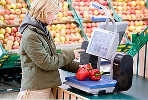 - Торгові ваги самообслуговування для супермаркетів – оснащені принтерами термоетикеток, мають великий обсяг вбудованої пам'яті. Покупець може самостійно вибрати, оцінити та промаркувати свої покупки.